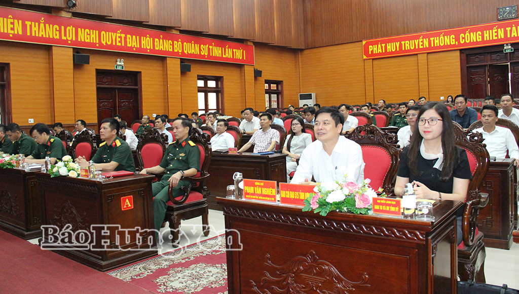 Các đại biểu dự hội nghị tập huấn tại điểm cầu Bộ Chỉ huy Quân sự tỉnh Hưng Yên.