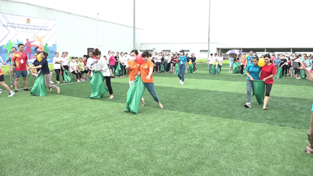 Hưởng ứng Tháng Công nhân, Công đoàn Công ty TNHH Sews – Components Việt Nam (Yên Mỹ) vừa tổ chức Đại hội Thể dục thể thao năm 2023, thu hút gần 400 người lao động tham gia tranh tài ở các nội dung bóng đá, kéo co, chạy tiếp sức, nhảy bao bố... Anh Nguyễn Bá Cường, Chủ tịch Công đoàn của công ty cho biết: Công đoàn doanh nghiệp đã tổ chức sân chơi bổ ích, tạo tinh thần phấn khởi, khí thế thi đua sôi nổi trong Tháng Công nhân, góp phần giải tỏa những căng thẳng sau giờ làm việc, giúp người lao động nâng cao năng suất, chất lượng công việc. Không chỉ trong Tháng Công nhân, công đoàn doanh nghiệp thường xuyên tổ chức các hoạt động chăm lo, nâng cao đời sống cho gần 1.300 người lao động; nhà xưởng, khu làm việc được vệ sinh sạch sẽ; nước nóng, lạnh được bố trí đầy đủ, 100% người lao động được tham gia bảo hiểm xã hội, giúp họ yên tâm làm việc.