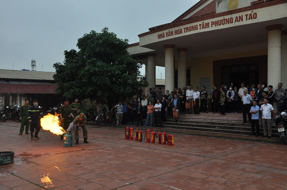 Công an thành phố Hưng Yên tập huấn kỹ năng chữa cháy cho cán bộ, công chức và Nhân dân phường An Tảo