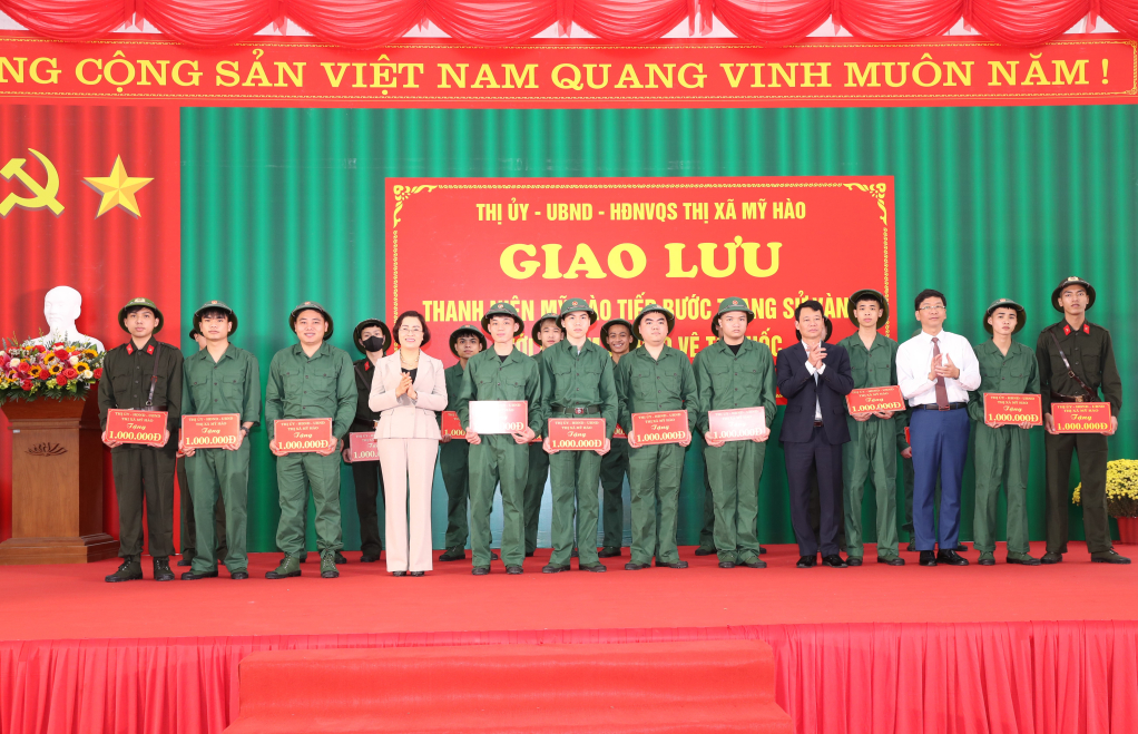 Lãnh đạo thị xã Mỹ Hào tặng quà các thanh niên trúng tuyển nghĩa vụ quân sự, tham gia nghĩa vụ