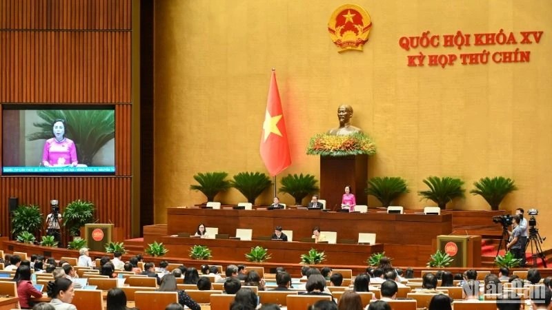 Các đại biểu Quốc hội làm việc tại hội trường. (Ảnh: BÙI GIANG)