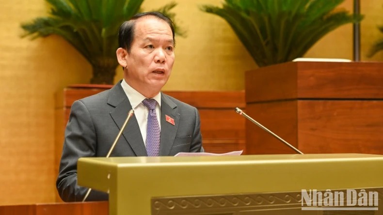 Chủ nhiệm Ủy ban Pháp luật và Tư pháp Hoàng Thanh Tùng trình bày Báo cáo thẩm tra. (Ảnh: BÙI GIANG)