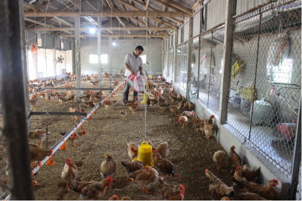 Ông Sơn cho biết: Với hệ thống chuồng trại sẵn có, cùng kinh nghiệm lâu năm gắn bó với nghề nuôi gà nên khi chuyển sang mô hình nuôi gà thả vườn, tôi không phải tốn nhiều chi phí đầu tư. Để thực hiện mô hình nuôi gà thả vườn, tôi cải tạo gần 1 sào vườn thành nơi thả gà. Giống gà gia đình tôi lựa chọn nuôi là giống gà ri lai. Đây là giống gà khỏe mạnh, có chất lượng thịt thơm, ngon, sức đề kháng tốt và thích hợp trong điều kiện thả vườn. Khi mới bắt đầu nuôi, vì chưa nắm vững kỹ thuật chăm sóc và thị trường tiêu thụ nên tôi chỉ nuôi 500 con. Nhờ cần cù, chịu khó học hỏi từ các mô hình chăn nuôi hiệu quả và được tập huấn kỹ thuật chăn nuôi gia cầm do địa phương, ngành chức năng tổ chức, lứa gà đầu tiên tôi đã có lãi.
