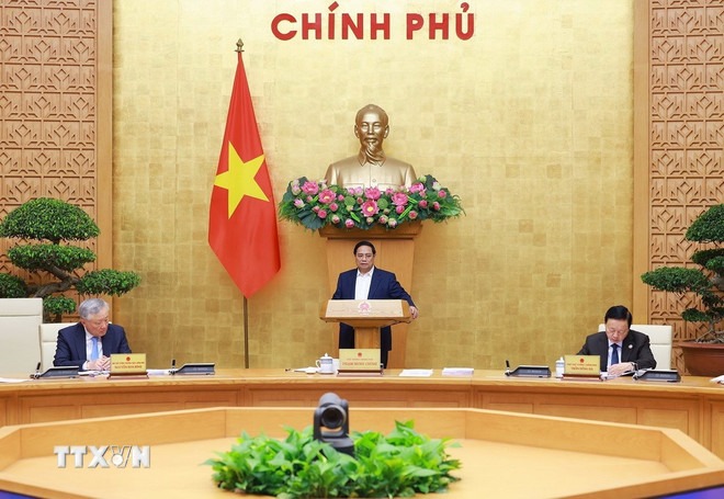 Thủ tướng Phạm Minh Chính chủ trì phiên họp Chính phủ thường kỳ tháng 5 năm 2025. (Ảnh: Dương Giang/TTXVN)