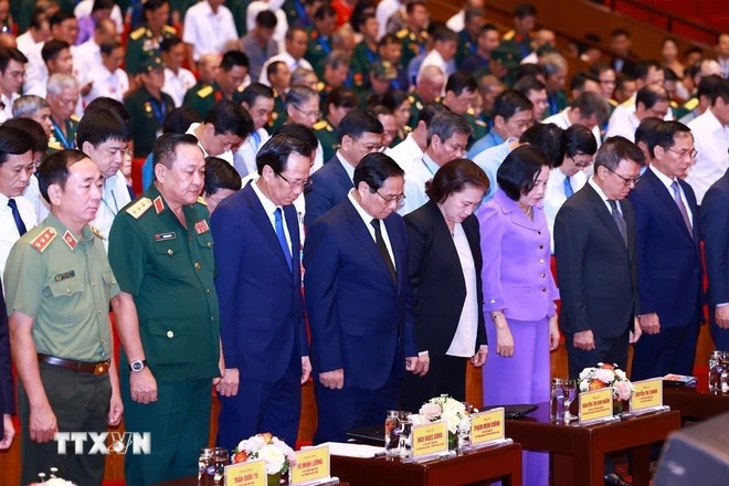 Trước khi diễn ra Hội nghị, Thủ tướng Chính phủ Phạm Minh Chính và các đại biểu dành một phút mặc niệm, tưởng nhớ sự hy sinh, công lao to lớn của các Anh hùng liệt sỹ đã ngã xuống trong sự nghiệp xây dựng và bảo vệ Tổ quốc và tưởng nhớ Tổng Bí thư Nguyễn Phú Trọng - người Cộng sản chân chính, trọn đời vì nước, vì dân.
