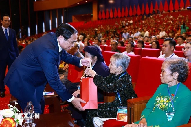 Phát biểu tại hội nghị, thay mặt lãnh đạo Đảng, Nhà nước, Thủ tướng Chính phủ Phạm Minh Chính trân trọng gửi đến các đồng chí lão thành cách mạng, các Mẹ Việt Nam Anh hùng, Anh hùng Lực lượng vũ trang nhân dân, các thương binh, bệnh binh, thân nhân liệt sỹ, người có công với cách mạng những tình cảm sâu nặng, lòng tri ân sâu sắc và lời thăm hỏi ân cần, thân thiết nhất; bày tỏ niềm tiếc thương vô hạn trước sự ra đi của Đồng chí Tổng Bí thư Nguyễn Phú Trọng, nhà lãnh đạo xuất sắc của Đảng, Nhà nước ta, người luôn đặc biệt quan tâm chăm lo công tác người có công với cách mạng.
