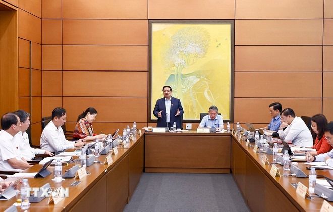 Phát biểu tại thảo luận tổ về thúc đẩy phát triển kinh tế-xã hội, Thủ tướng Phạm Minh Chính nhấn mạnh đến 3 đột phá chiến lược về thể chế, hạ tầng, nhân lực và 4 “trụ cột” gồm: Nghị quyết 57 của Bộ Chính trị về thúc đẩy khoa học công nghệ và đổi mới sáng tạo; Nghị quyết 59 về chủ động hội nhập quốc tế sâu rộng; Nghị quyết 66 về đổi mới toàn diện công tác xây dựng, thi hành pháp luật và Nghị quyết 68 phát triển khu vực kinh tế tư nhân.
