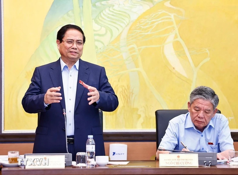Thủ tướng Phạm Minh Chính, đại biểu Quốc hội thành phố Cần Thơ phát biểu. (Ảnh: Doãn Tấn/TTXVN)