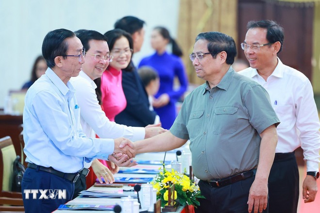 Thủ tướng Phạm Minh Chính với các đại biểu. (Ảnh: Dương Giang/TTXVN)