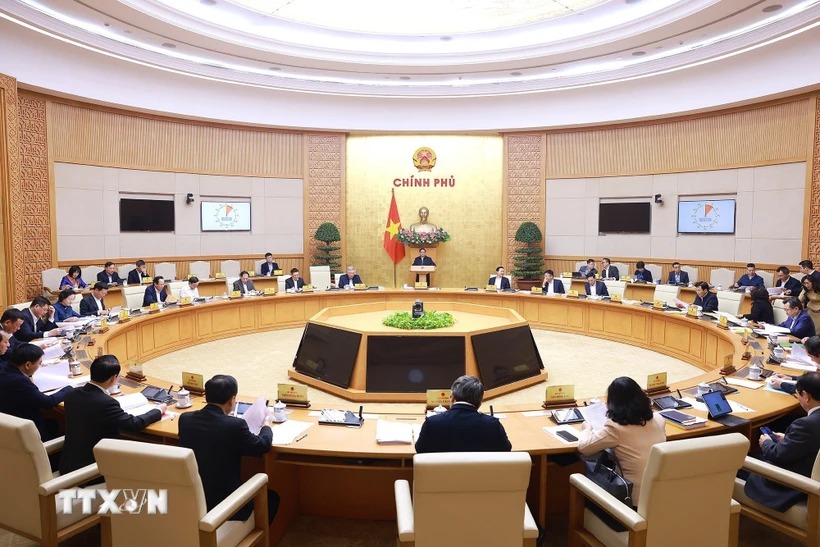 Thủ tướng Phạm Minh Chính chủ trì phiên họp Chính phủ chuyên đề về xây dựng pháp luật tháng 1/2025. (Ảnh: Dương Giang/TTXVN)