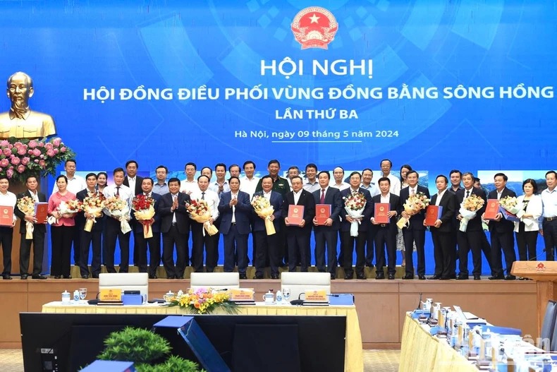 Sáng 9/5, tại Trụ sở Chính phủ, Thủ tướng Phạm Minh Chính - Chủ tịch Hội đồng điều phối vùng đồng bằng sông Hồng chủ trì Hội nghị lần thứ ba của Hội đồng. Tại Hội nghị, Thủ tướng Phạm Minh Chính và Bộ trưởng Kế hoạch và Đầu tư Nguyễn Chí Dũng đã trao Quyết định của Thủ tướng Chính phủ phê duyệt Quy hoạch cho lãnh đạo các tỉnh, thành phố vùng Đồng bằng sông Hồng.