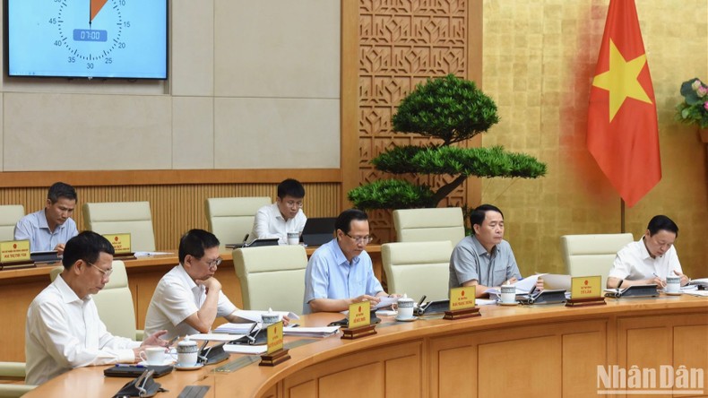 Thủ tướng Phạm Minh Chính chủ trì phiên họp Chính phủ chuyên đề về xây dựng pháp luật tháng 7/2023. (Ảnh: Trần Hải).