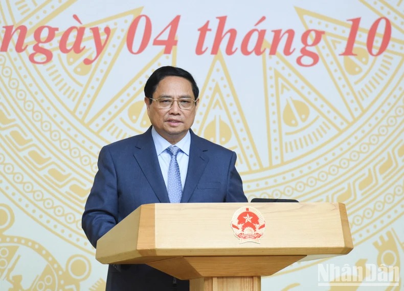 Thủ tướng Phạm Minh Chính phát biểu ý kiến tại buổi gặp mặt. (Ảnh: TRẦN HẢI)