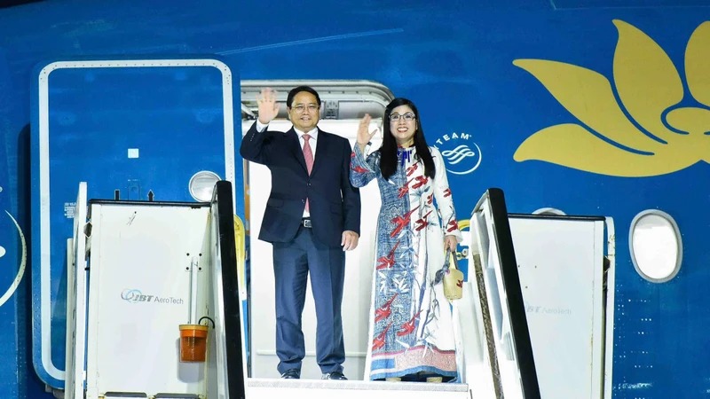 Thủ tướng Phạm Minh Chính và Phu nhân tới sân bay Las Américas ở thủ đô Santo Domingo, bắt đầu chuyến thăm chính thức Cộng hòa Dominica. (Ảnh: NGUYỄN HỒNG)