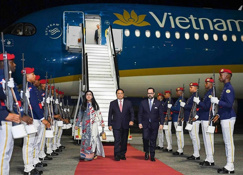 Sau khi kết thúc tốt đẹp chuyến tham dự Hội nghị thượng đỉnh G20 tại Rio de Janeiro, Brazil, vào khoảng 22 giờ tối 19/11, giờ địa phương (tức 9 giờ sáng 20/11, giờ Việt Nam), chuyên cơ chở Thủ tướng Phạm Minh Chính và Phu nhân cùng Đoàn đại biểu cấp cao Việt Nam đã hạ cánh xuống sân bay Las Américas ở thủ đô Santo Domingo, bắt đầu chuyến thăm chính thức Cộng hòa Dominica theo lời mời của Tổng thống Luis Rodolfo Abinader Corona và Phu nhân.