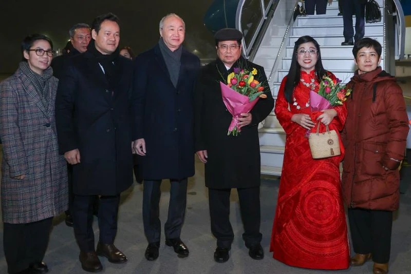Thủ tướng Phạm Minh Chính và Phu nhân tới Sân bay quốc tế Zurich bắt đầu tham dự Hội nghị WEF Davos lần thứ 55 và làm việc song phương (Ảnh: NHẬT BẮC/VGP).