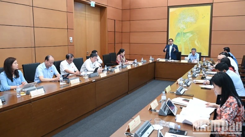 Thủ tướng Phạm Minh Chính phát biểu tại phiên họp tổ của Quốc hội, sáng 23/5/2025. (Ảnh: BÙI GIANG)