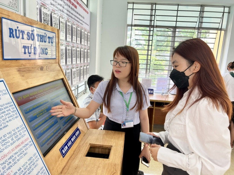 Công chức bộ phận một cửa Ủy ban nhân dân thành phố Cam Ranh, tỉnh Khánh Hòa hướng dẫn nhân dân giải quyết thủ tục hành chính_Nguồn: baokhanhhoa.vn
