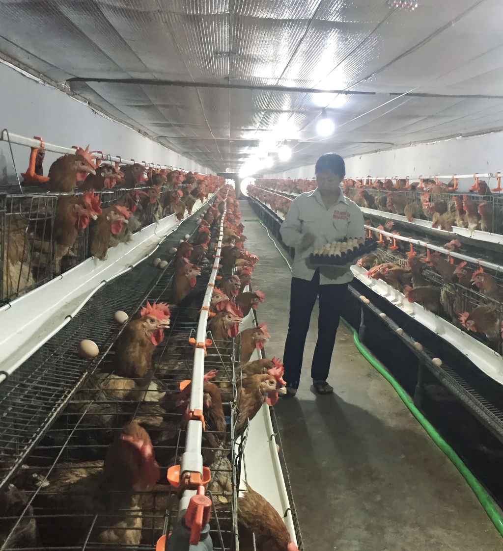Chị Lê Thị Nguyệt, xã Hải Triều (Tiên Lữ) chăn nuôi gà khép kín