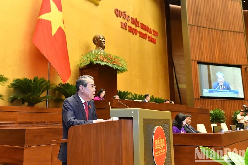 Sáng 21/10, tại kỳ họp 8 Quốc hội khóa XV, Trưởng ban Dân nguyện Dương Thanh Bình trình bày báo cáo của Ủy ban Thường vụ Quốc hội về kết quả giám sát việc giải quyết, trả lời kiến nghị của cử tri gửi đến kỳ họp thứ 7 Quốc hội khóa XV. (Ảnh: ĐĂNG KHOA)