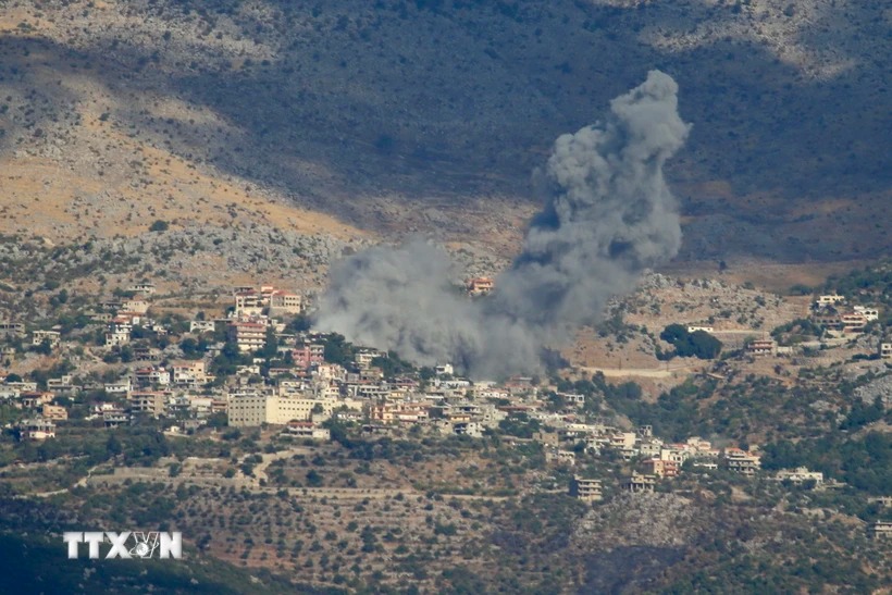 Khói bốc lên sau vụ không kích của Israel xuống Kfarchouba, Liban, ngày 16/9/2024. Ảnh: THX/TTXVN