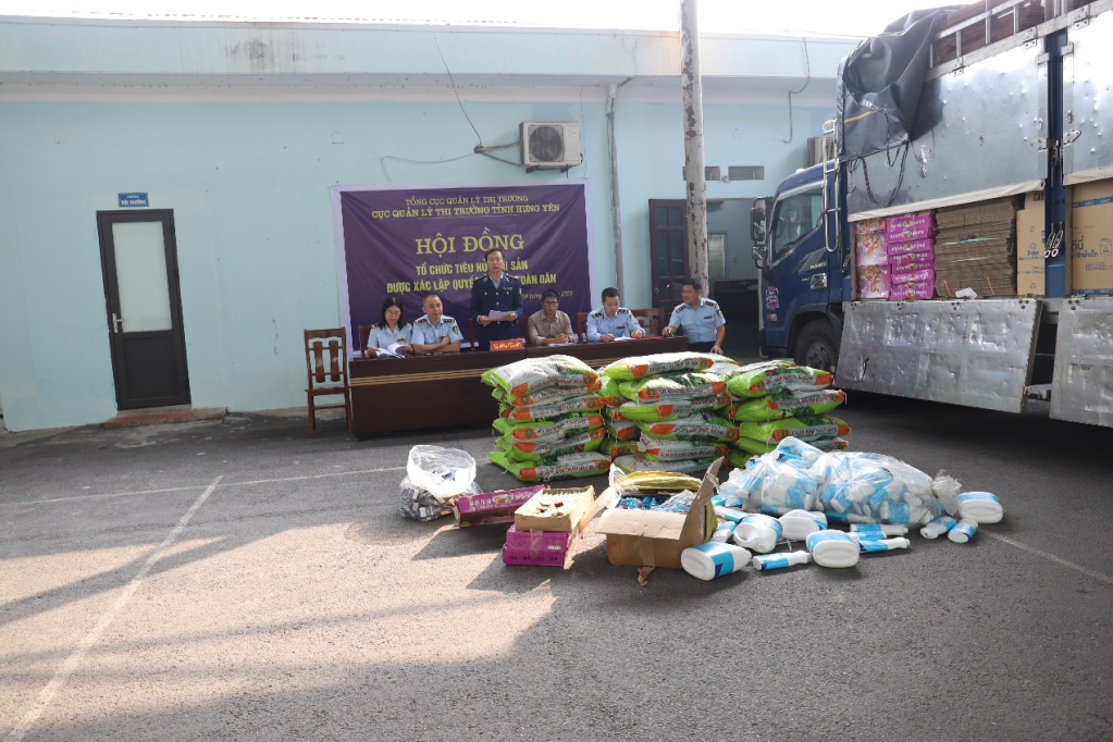 Ngày 29/11, Hội đồng tổ chức tiêu hủy tài sản được xác lập quyền sở hữu toàn dân (Hội đồng) được thành lập theo Quyết định số 903/QĐ-QLTTHY ngày 22/11/2023 của Cục Quản lý thị trường tỉnh tổ chức tiêu hủy tài sản là tang vật bị tịch thu do vi phạm hành chính.