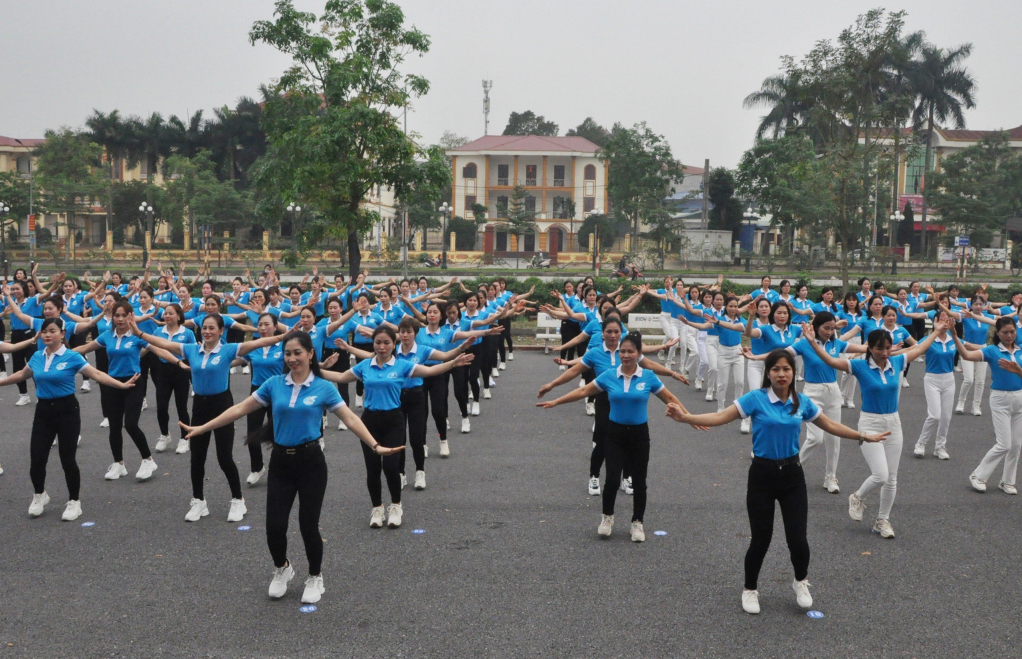 Phụ nữ Hưng Yên tham gia màn đồng diễn dân vũ