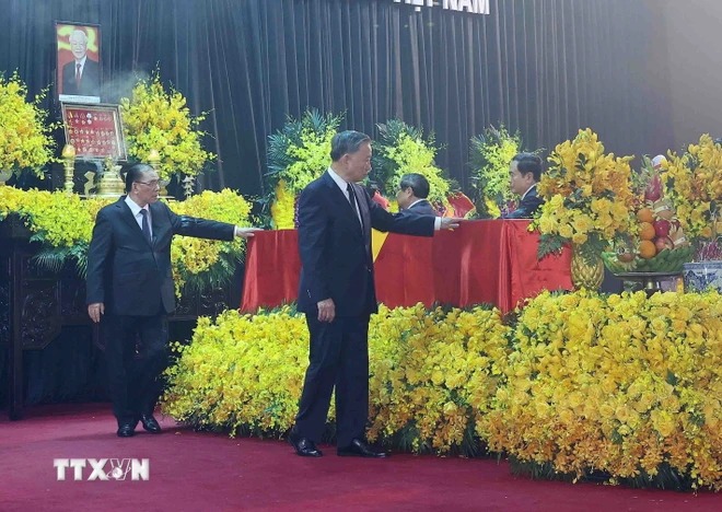 Lễ truy điệu Tổng Bí thư Nguyễn Phú Trọng. (Ảnh: TTXVN)