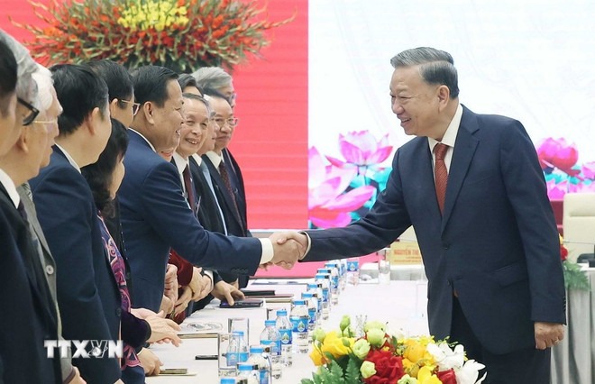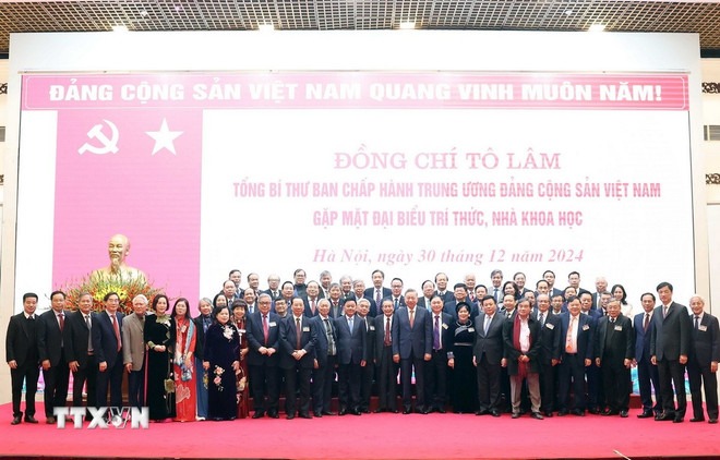 Sáng 30/12, tại Hà Nội, Tổng Bí thư Tô Lâm đã gặp mặt 200 trí thức, nhà khoa học có nhiều thành tích, đóng góp, đang hoạt động trong các ngành, lĩnh vực nghiên cứu, ứng dụng, giáo dục và đào tạo trên toàn quốc.