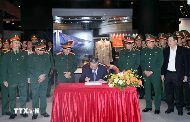 Nhân dịp này, Tổng Bí thư Tô Lâm, Bí thư Quân ủy Trung ương đã ghi sổ Vàng lưu niệm với nội dung: “Bảo tàng Lịch sử Quân sự Việt Nam là một biên niên sự kiện bằng tài liệu, hình ảnh, hiện vật xuyên suốt chiều dài lịch sử ra đời, chiến đấu, chiến thắng và trưởng thành của Quân đội nhân dân Việt Nam anh hùng.