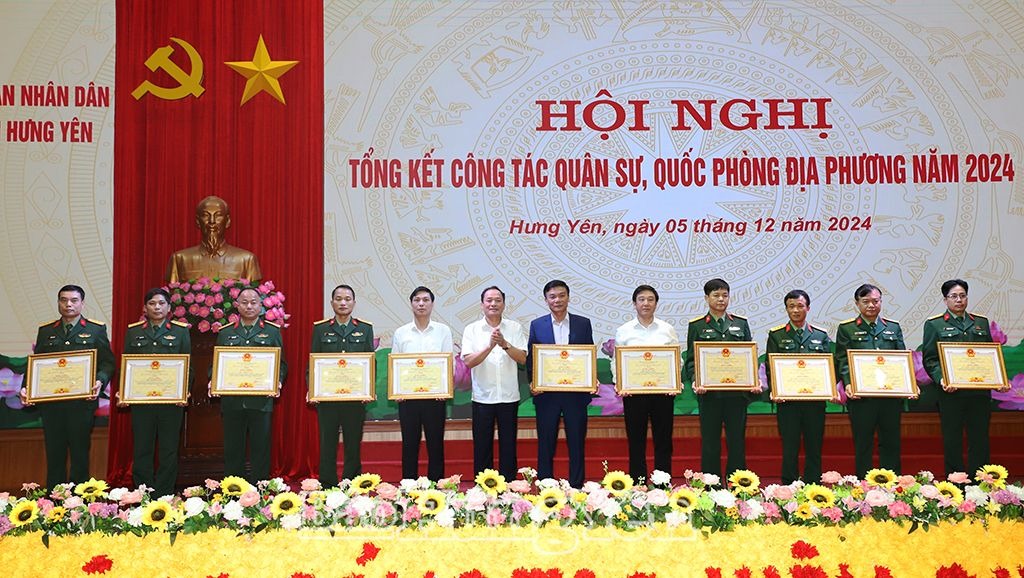 Năm 2024, UBND tỉnh đã chỉ đạo các sở, ngành, địa phương tổ chức quán triệt, thực hiện nghiêm túc các chỉ thị, nghị quyết của Đảng, pháp luật Nhà nước về công tác quốc phòng, an ninh. Thực hiện Chỉ thị số 57-CT/TU ngày 22/12/2023 của Ban Thường vụ Tỉnh ủy về công tác lãnh đạo, chỉ đạo, tổ chức thực hiện nhiệm vụ quân sự, quốc phòng địa phương năm 2024, UBND tỉnh tổ chức 6 hội nghị, ban hành 16 văn bản chỉ đạo công tác quân sự, quốc phòng địa phương bảo đảm đồng bộ, toàn diện đến các cấp, các ngành, địa phương. UBND tỉnh chỉ đạo các ngành, địa phương thực hiện tốt chức năng quản lý nhà nước về quốc phòng; trong đó quản lý chặt chẽ đất quốc phòng, công trình quốc phòng theo đúng quy định và tổ chức thẩm định, giám sát 7 dự án phát triển kinh tế - xã hội liên quan đến yếu tố quốc phòng, an ninh. Bộ CHQS tỉnh tham mưu với Tỉnh ủy, UBND tỉnh lãnh đạo, chỉ đạo, triển khai thực hiện tốt nhiệm vụ xây dựng và hoạt động của khu vực phòng thủ (KVPT) tỉnh; chỉ đạo, hướng dẫn các cơ quan chức năng, các ngành kinh tế động viên toàn dân tích cực lao động, sản xuất tạo ra nhiều sản phẩm có giá trị, nâng cao thu nhập đời sống Nhân dân, góp phần tạo nguồn dự trữ vật chất hậu cần, kỹ thuật. Trong năm, tỉnh đã cử 32 cán bộ tham gia bồi dưỡng kiến thức quốc phòng – an ninh tại Học viện Quốc phòng và Trường quân sự Quân khu 3; tổ chức 5 lớp bồi dưỡng kiến thức quốc phòng – an ninh đối tượng 3 cho 367 đồng chí và chỉ đạo cấp huyện, cấp xã mở 67 lớp với 2.162 đồng chí thuộc đối tượng 4. Ban Chỉ đạo diễn tập KVPT tỉnh chỉ đạo tổ chức diễn tập hình thức chiến thuật Tiểu đoàn bộ binh tiến công địch đổ bộ đường không cho Tiểu đoàn 3, Trung đoàn bộ binh 126; diễn tập vận hành cơ chế Ban Chỉ đạo phòng không Nhân nhân thực hành phòng tránh đánh trả địch tiến công hỏa lực đường không cho các huyện: Phù Cừ, Văn Lâm và thành phố Hưng Yên. Về công tác tuyển quân, UBND tỉnh chỉ đạo các tổ chức, sở, ngành chức năng và các địa phương giao đủ 1.852 công dân thực hiện nghĩa vụ Quân sự và 256 công dân thực hiện nghĩa vụ tham gia Công an nhân dân…