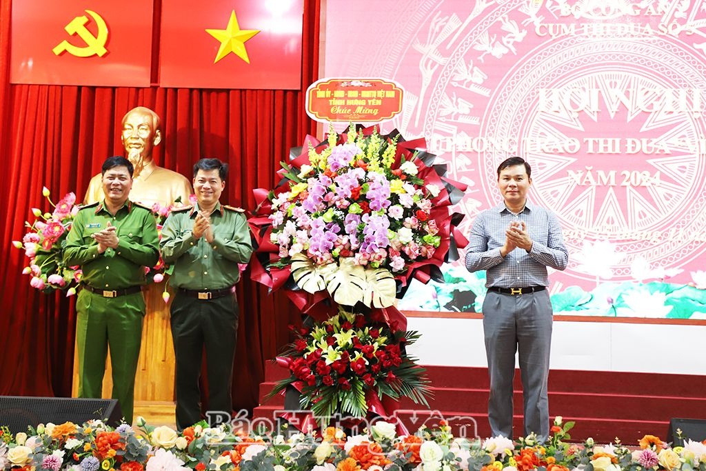 Các tập thể nhận hoa và biểu trưng ghi danh điển hình tiên tiến trong phong trào thi đua “Vì an ninh Tổ quốc” năm 2024