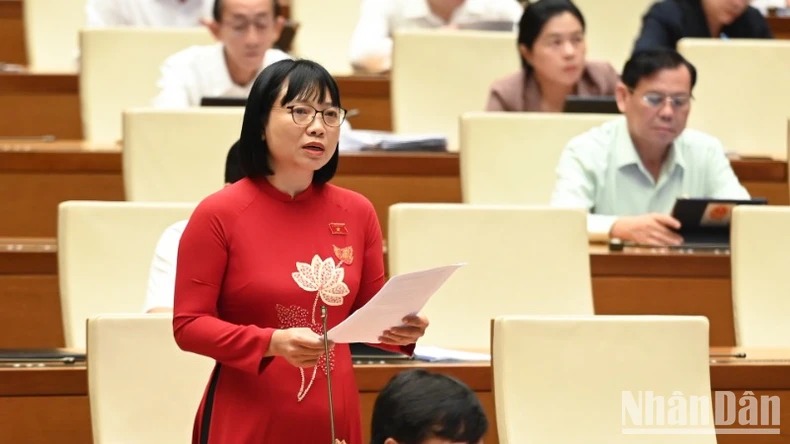 Đại biểu Huỳnh Thị Ánh Sương (Đoàn Quảng Ngãi) phát biểu tại hội trường. (Ảnh: BÙI GIANG)