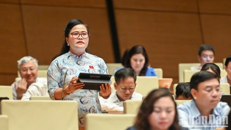Quốc hội thảo luận ở hội trường về dự thảo Nghị quyết của Quốc hội về một số cơ chế, chính sách đặc biệt, tạo đột phá trong xây dựng và tổ chức thi hành pháp luật. (Ảnh: BÙI GIANG)