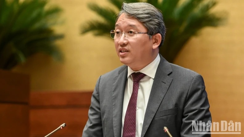 Bộ trưởng Tư pháp Nguyễn Hải Ninh phát biểu giải trình, làm rõ một số vấn đề đại biểu Quốc hội quan tâm. (Ảnh: BÙI GIANG)