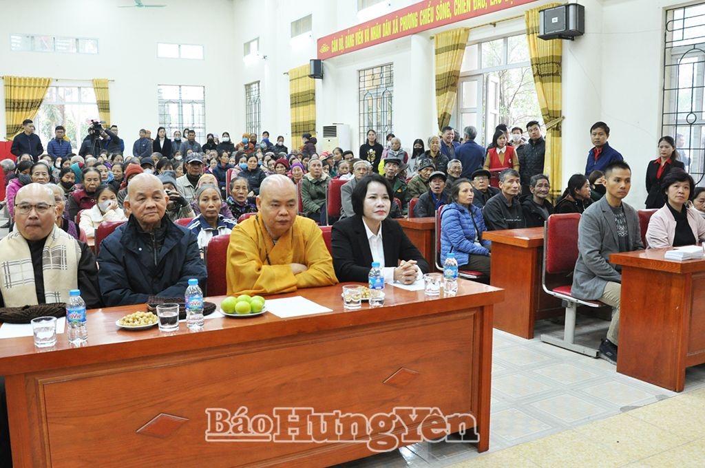 Các đại biểu dự chương trình trao quà “Tết yêu thương” tại xã Phương Nam (thành phố Hưng Yên)
