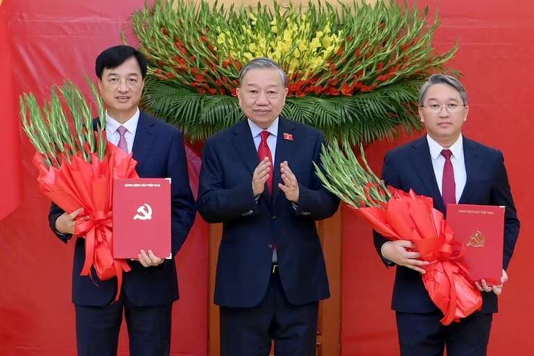 Thay mặt Bộ Chính trị, Ban Bí thư, Tổng Bí thư, Chủ tịch nước Tô Lâm trao quyết định và phát biểu chúc mừng các đồng chí Lê Minh Hưng đã được Quốc hội bầu giữ chức Thủ tướng Chính phủ; đồng chí Phạm Gia Túc được bổ nhiệm giữ chức Phó Thủ tướng Thường trực Chính phủ; đồng chí Nguyễn Duy Ngọc được phân công tham gia Ban Bí thư và bổ nhiệm giữ chức Trưởng Ban Tổ chức Trung ương; đồng chí Nguyễn Hải Ninh được bổ nhiệm giữ chức Chánh Văn phòng Trung ương Đảng.