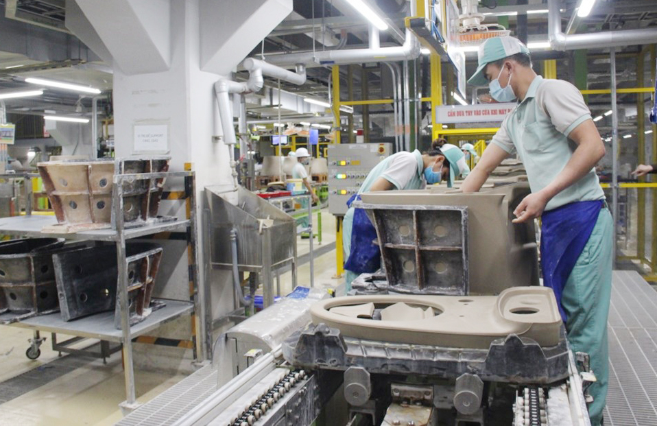 Các doanh nghiệp trên địa bàn tỉnh đã tạo việc làm cho nhiều lao động, góp phần giảm nghèo, bảo đảm an sinh xã hội (Trong ảnh: Giờ sản xuất tại Công ty TNHH TOTO Việt Nam - Chi nhánh Hưng Yên (Khu công nghiệp Thăng Long II))