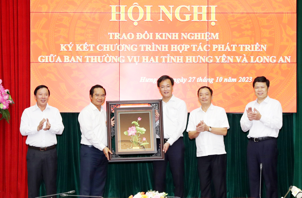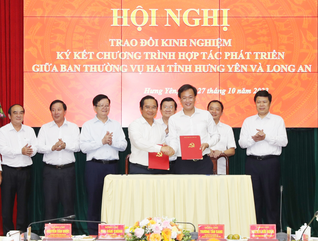 Ngày 27/10, tại Trụ sở Tỉnh ủy Hưng Yên diễn ra hội nghị trao đổi kinh nghiệm và ký kết chương trình hợp tác, phát triển giữa Ban Thường vụ Tỉnh ủy Hưng Yên với Ban Thường vụ Tỉnh ủy Long An giai đoạn 2023 – 2025.
