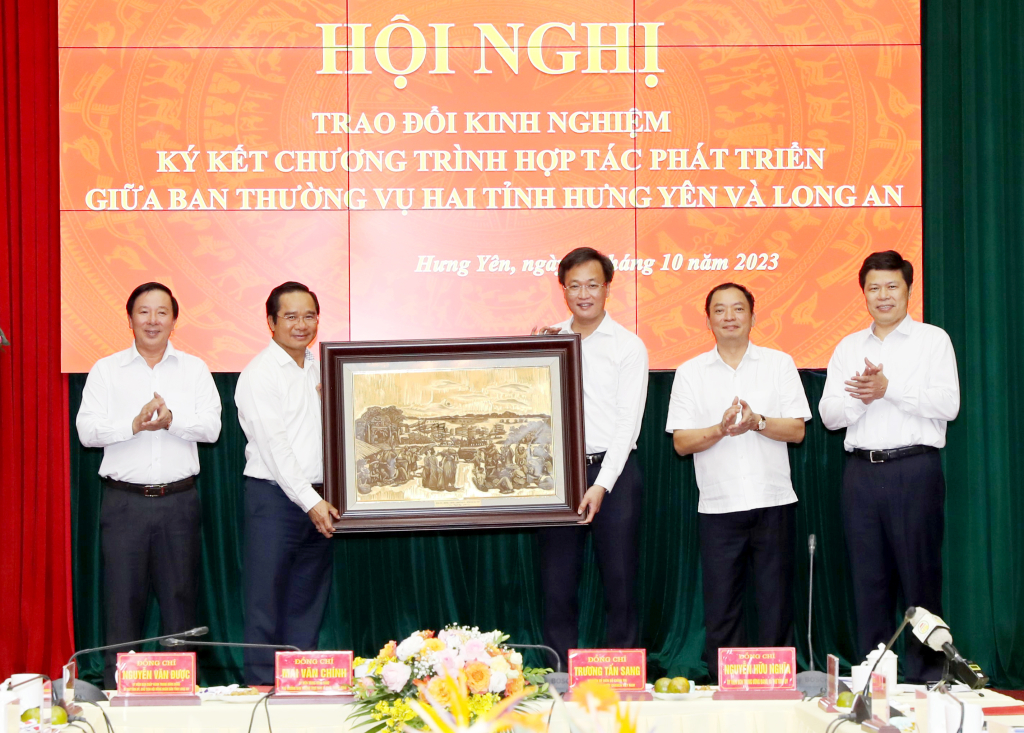 Thường trực Tỉnh ủy Hưng Yên tặng Thường trực Tỉnh ủy Long An