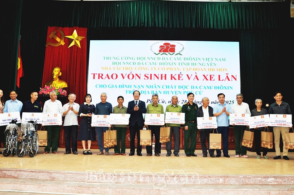 Ngày 28/3, Hội Nạn nhân chất độc da cam/Dioxin Việt Nam phối hợp với Hội Nạn nhân chất độc da cam/Dioxin tỉnh, Công ty Cổ phần Tập đoàn HDMON (trụ sở tại Hà Nội) trao tặng quà, xe lăn, sổ tiết kiệm và trao vốn hỗ trợ sinh kế cho 27 nạn nhân chất độc da cam tại các huyện: Khoái Châu, Phù Cừ và thành phố Hưng Yên.