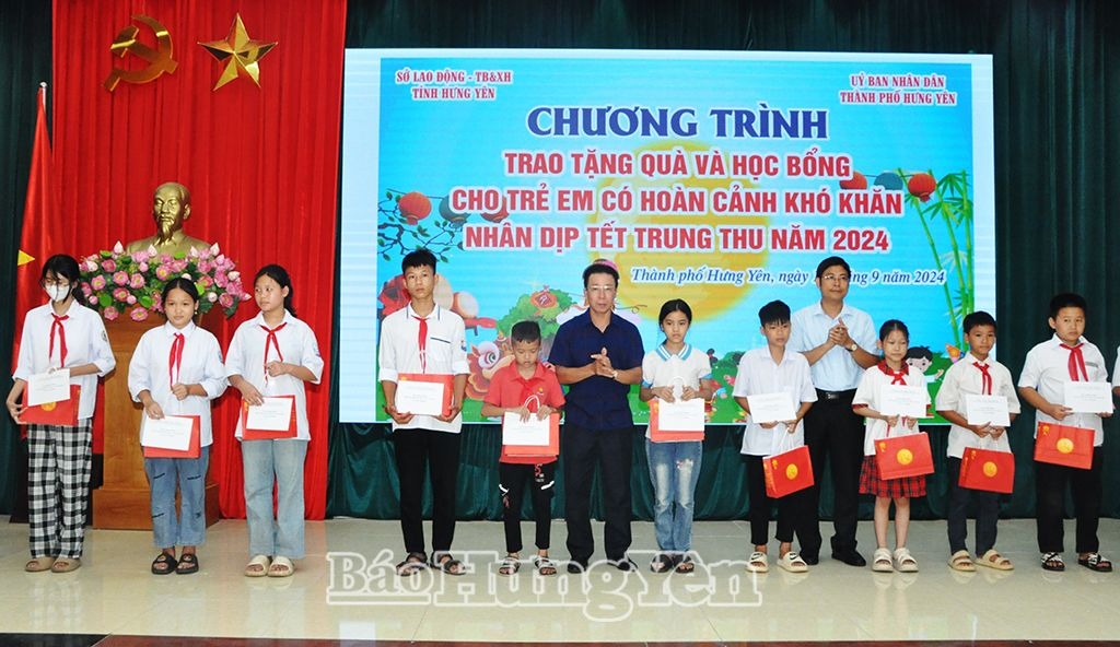 Ngày 16/9, Sở Lao động - Thương binh và Xã hội phối hợp với UBND thành phố Hưng Yên tổ chức chương trình trao tặng quà và học bổng cho trẻ em có hoàn khó khăn nhân dịp Tết Trung thu năm 2024.