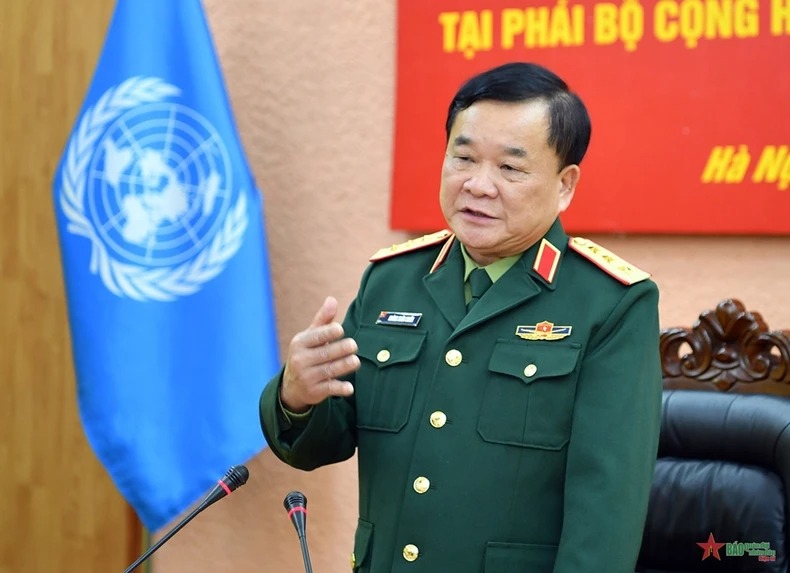 Thượng tướng Hoàng Xuân Chiến, Ủy viên Trung ương Đảng, Thứ trưởng Quốc phòng, Tổ trưởng Tổ Công tác liên ngành, Trưởng Ban Chỉ đạo Bộ Quốc phòng về tham gia hoạt động gìn giữ hòa bình Liên hợp quốc chủ trì và phát biểu giao nhiệm vụ cho các sĩ quan.