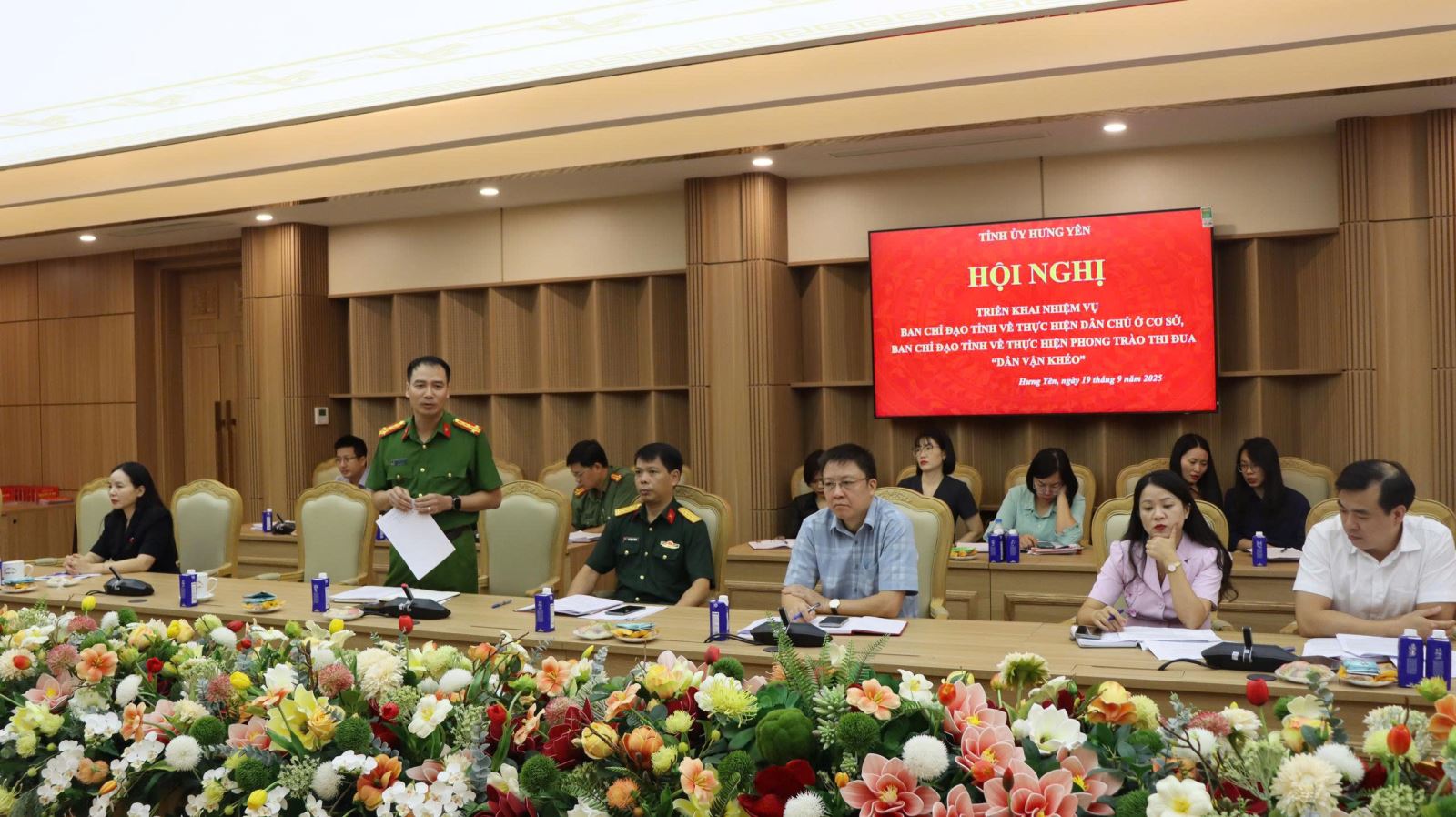 Lãnh đạo Ban Tuyên giáo và Dân vận Tỉnh ủy cơ quan thường trực của 2 BCĐ đã triển khai các văn bản của BCĐ tỉnh về thực hiện dân chủ cơ sở và BCĐ tỉnh về thực hiện phong trào thi đua “Dân vận khéo”. Tại hội nghị đã tập trung đánh giá khái quát hoạt động của 2 BCĐ tỉnh từ khi thực hiện sáp nhập các đơn vị hành chính, thực hiện chính quyền địa phương 2 cấp. Ngày 28/7/2025, Ban Thường vụ Tỉnh uỷ ban hành Quyết định số 15-QĐ/TU về thành lập BCĐ tỉnh về thực hiện dân chủ ở cơ sở, ngay sau ban hành Quy chế hoạt động, Thông báo phân công nhiệm vụ các thành viên BCĐ tỉnh, thành lập Tổ Chuyên viên giúp việc BCĐ tỉnh và xây dựng Chương trình công tác 6 tháng cuối năm 2025; hướng dẫn thành lập BCĐ thực hiện dân chủ ở các đảng uỷ trực thuộc Tỉnh uỷ, các xã, phường. Đến nay, 100% các đảng ủy trực thuộc Tỉnh ủy, các xã, phường đã thành lập BCĐ và cơ bản đã ban hành các văn bản để triển khai hoạt động. Có 33/108 đảng ủy trực thuộc Tỉnh ủy đã thành lập Tổ Chuyên viên giúp việc BCĐ theo hướng dẫn của Ban Tuyên giáo và Dân vận Tỉnh uỷ. Ban Thường vụ Tỉnh uỷ ban hành Quyết định số 12-QĐ/TU, ngày 28/7/2025 về việc thành lập BCĐ tỉnh về thực hiện phong trào thi đua “Dân vận khéo”; Thông báo số 172-TB/TU, ngày 30/7/2025 về tiếp tục triển khai thực hiện phong trào thi đua “Dân vận khéo” trên địa bàn tỉnh giai đoạn 2025 - 2030”. BCĐ tỉnh ban hành Quy chế làm việc; Thông báo phân công nhiệm vụ các thành viên BCĐ; xây dựng, ban hành Kế hoạch hoạt động 6 tháng cuối năm 2025. Hướng dẫn thành lập ban chỉ đạo về thực hiện phong trào thi đua “Dân vận khéo” ở các đảng ủy trực thuộc Tỉnh ủy và các xã, phường; đến nay, 04 đảng ủy trực thuộc Tỉnh ủy và 104 xã, phường đã thành lập BCĐ về thực hiện phong trào thi đua “Dân vận khéo”, đồng thời ban hành quy chế làm việc, phân công nhiệm vụ các thành viên BCĐ. Hướng dẫn các đảng ủy trực thuộc và các xã, phường đăng ký, xây dựng và công nhận mô hình, điển hình “Dân vận khéo”; ban hành Kế hoạch tuyên truyền các mô hình điển hình “Dân vận khéo” đến hết năm 2025 (phối hợp mỗi tháng xây dựng phóng sự tuyên truyền ít nhất 01 mô hình, điển hình “Dân vận khéo” trên Báo và Phát thanh, truyền hình Hưng Yên). Trong quý III/2025, Ban Tuyên giáo và Dân vận Tỉnh ủy phối hợp xây dựng phóng sự về mô hình “Dân vận khéo” của Công an tỉnh và Sở Giáo dục và Đào tạo. Thông tấn xã Việt Nam thường trú tại Hưng Yên đã đăng loạt bài viết tuyên truyền về mô hình “Dân vận khéo 1+10”; Báo và Phát thanh, Truyền hình Hưng Yên đăng tải bài viết tuyên truyền “Hiệu quả phong trào thi đua “Dân vận khéo”...Ban Tuyên giáo và Dân vận Tỉnh ủy nghiên cứu, tham mưu giúp Ban Thường vụ Tỉnh ủy xây dựng Đề án về “Nâng cao chất lượng, hiệu quả hoạt động mô hình “Dân vận khéo 1 +10” ở thôn, tổ dân phố trên địa bàn tỉnh Hưng Yên, giai đoạn 2025 - 2030”, xây dựng Đề án của Ban Thường vụ Tỉnh ủy; tiến hành khảo sát, đánh giá việc triển khai thực hiện mô hình “Dân vận khéo 1 +10” tại 08 xã, phường; xây dựng Kế hoạch tổ chức Hội thảo “Giải pháp nâng cao hiệu quả phong trào thi đua Dân vận khéo, nhất là mô hình Dân vận khéo 1 +10 trong giai đoạn hiện nay”…Tại hội nghị, các đại biểu đã phát biểu thảo luận tập trung vào các nhiệm vụ nổi bật trong quý 4 năm 2025, nêu một số tồn tại, hạn chế và giải pháp thực hiện dân chủ ở cơ sở, phong trào thi đua “Dân vận khéo” trong thời gian tới.