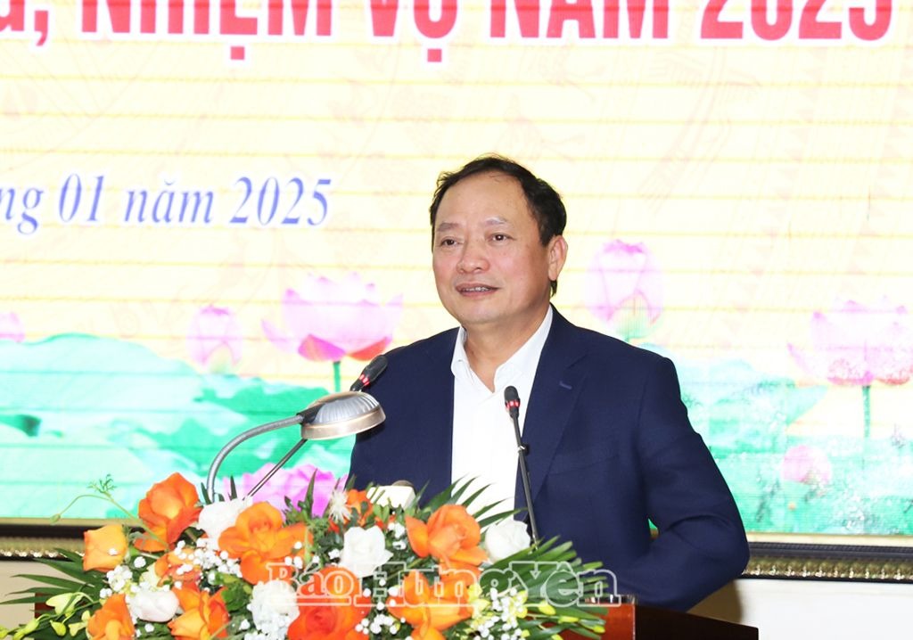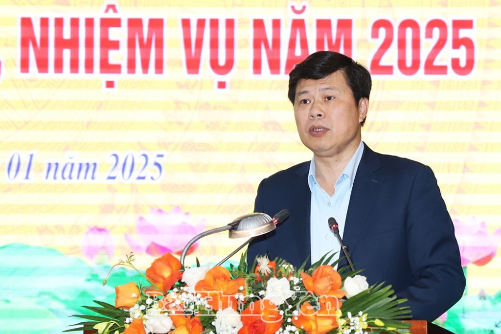 Phát biểu kết luận hội nghị, đồng chí Nguyễn Hữu Nghĩa, Ủy viên BCH Trung ương Đảng, Bí thư Tỉnh ủy nhấn mạnh một số nhiệm vụ quan trọng mà Đảng bộ tỉnh cần tập trung triển khai thực hiện trong năm 2025 như: Tập trung mọi biện pháp, nguồn lực với quyết tâm cao nhất, nỗ lực lớn nhất hoàn thành thắng lợi các mục tiêu, chỉ tiêu nghị quyết đại hội đảng bộ các cấp đề ra; cán bộ, đảng viên, nhất là người đứng đầu phải gương mẫu, đi đầu và chịu trách nhiệm với tinh thần “chỉ bàn làm, không bàn lùi”; kịp thời cụ thể hóa thực hiện các văn bản chỉ đạo của cấp trên, xác định đúng và trúng yêu cầu, nhiệm vụ; đề ra phương hướng, giải pháp triển khai có tính khoa học và thực tiễn, thiết thực và khả thi; thực hiện khẩn trương, quyết liệt, hiệu quả việc sắp xếp bộ máy của hệ thống chính trị cấp tỉnh, cấp huyện “tinh - gọn - mạnh - hiệu năng - hiệu lực - hiệu quả”, với tinh thần “vừa chạy vừa xếp hàng”, “không được để gián đoạn công việc”; tập trung lãnh đạo, chỉ đạo, tổ chức thành công đại hội đảng bộ các cấp tiến tới Đại hội Đảng bộ tỉnh lần thứ XX, nhiệm kỳ 2025 – 2030; chú trọng công tác kiểm tra, giám sát, kỷ luật đảng và công tác nội chính, phòng, chống tham nhũng, lãng phí, tiêu cực, cải cách tư pháp; tập trung lãnh đạo, chỉ đạo đẩy mạnh phát triển kinh tế - xã hội, bảo đảm quốc phòng, an ninh; chú trọng cải thiện môi trường, thu hút đầu tư, khơi thông các nguồn vốn, thúc đẩy đầu tư phát triển, nhất là kết cấu hạ tầng công nghiệp, đô thị, giao thông, thương mại - dịch vụ và các công trình quan trọng khác theo quy hoạch; triển khai đồng bộ, hiệu quả các chính sách an sinh xã hội…