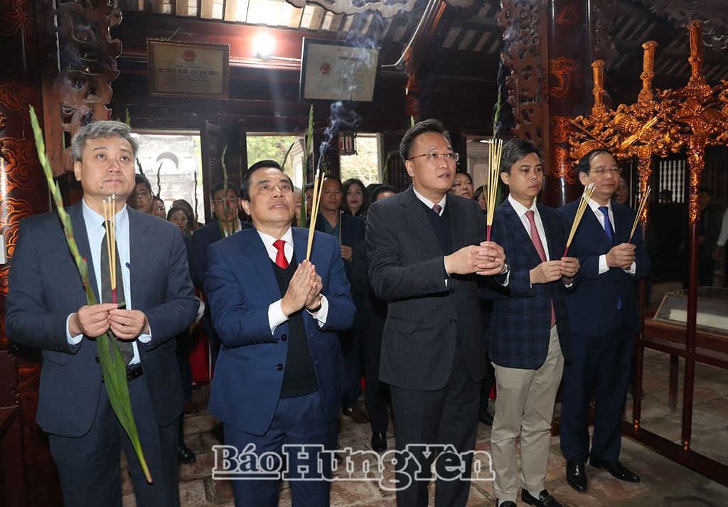 Đồng chí Bí thư Tỉnh ủy Nguyễn Hữu Nghĩa và các đại biểu dâng hương tại Văn miếu Xích Đằng