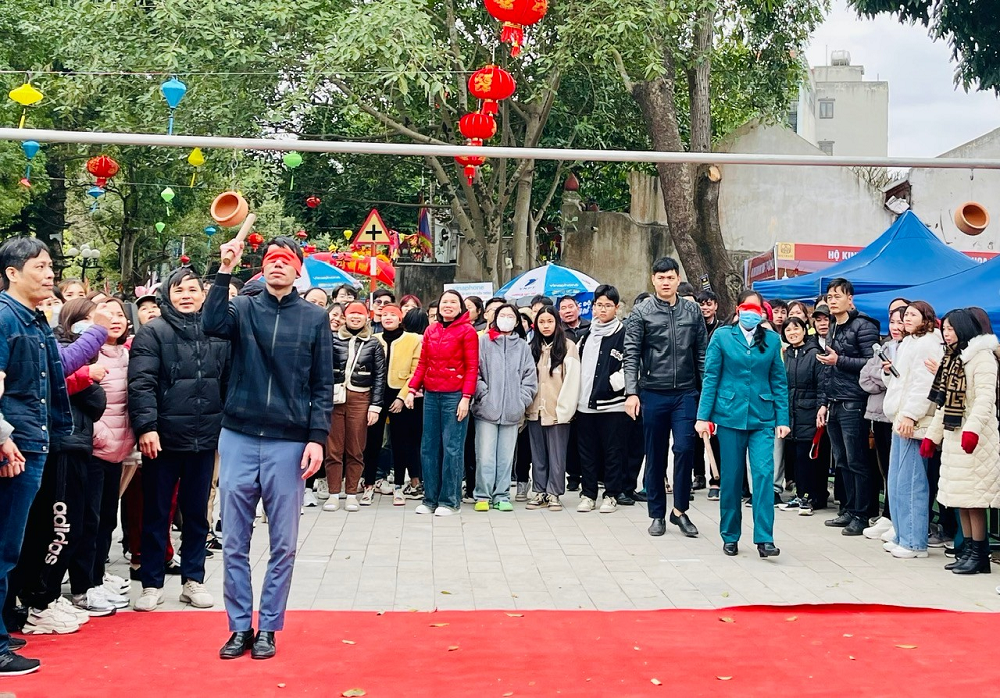 Trò chơi bịt mắt đập niêu tại Lễ hội Văn hóa dân gian Phố Hiến năm 2024
