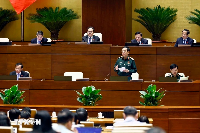 Bộ trưởng Bộ Quốc phòng Phan Văn Giang giải trình, làm rõ một số vấn đề đại biểu Quốc hội nêu. (Ảnh: Doãn Tấn/TTXVN)