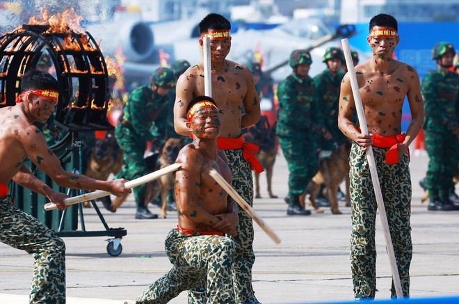 Lực lượng đặc công trình diễn võ thuật, khí công tại lễ khai mạc Triển lãm Quốc phòng Quốc tế Việt Nam 2024. (Ảnh: Dương Giang/TTXVN)