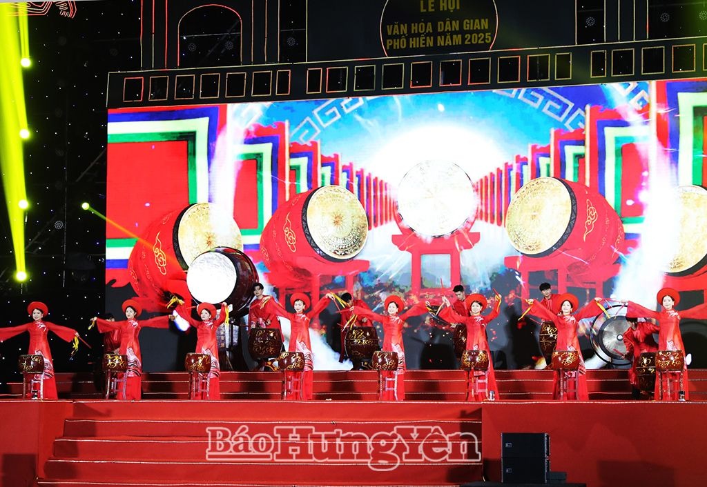 Màn trống hội trong chương trình khai mạc Lễ hội Văn hóa dân gian Phố Hiến năm 2025